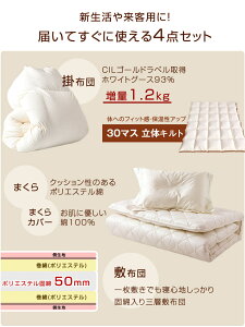 ★12時〜12H全品P5倍★【送料無料】 日本製 グースダウン 羽毛布団セット シングル 4点 セット 新基準400dp以上 CILゴールドラベル 羽毛布団 抗菌 消臭 ホワイト グース ダウン 93% 枕 敷き布団 敷布団 布団セット 国産 羽毛掛け布団 羽毛 布団 組布団 新生活